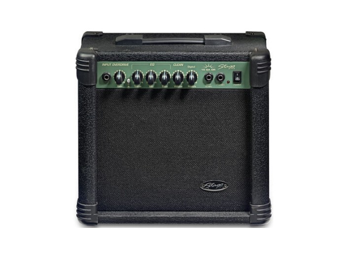 The Stagg 15 GA DR offers all the great standard Amplification features found on all Stagg models and more! Additional adjustable Digital Reverb has been built into this smart 15 watt model to sit alongside other impressive features such as Volume & Gain control, 3-Band EQ (Bass/Parametric Mi/Treble), Distortion Overdrive switch, Headphone mini-jack output, and a Stereo Jack input for a CD or MP3 Player. Perfect for the entry level guitarist and young students, the Stagg 15 GA DR 15 Watt Guitar Amp produces fantastic tonal results, and also features a heavy duty carry handle for easy transportation.