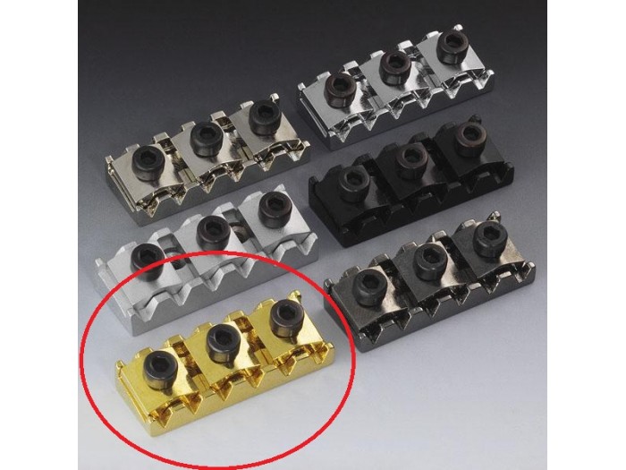 Essentially, special studs are used to attach the tremolo, together with their own inserts. These have a fine thread. For special applications, we also supply studs with threads which can be screwed directly into the wooden body (i.e. without inserts).
