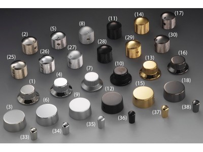Finished control knobs made of solid brass. The 18-mm-knobs are also available in finished aluminium.
