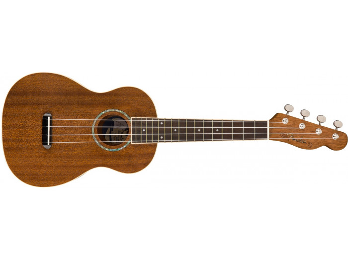 The Zuma falls between the smaller soprano and the larger tenor sizes, providing a full sound and comfortable playing experience for players with larger hands. The easy-playing 16-fret neck extends the range, while the pull-through bridge makes changing strings quick and easy. A striking abalone rosette, bound top, back and fingerboard and 4-in-line Tele® headstock, stand out from the crowd with plenty of Fender vibe.