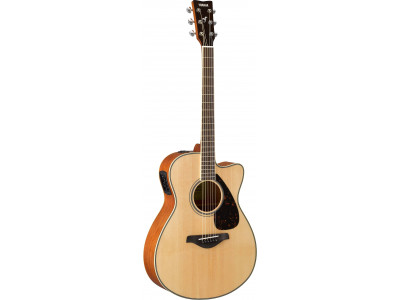 Derived from FS820 which has the solid spruce top and mahogany back/sides, FSX820C has a cutaway body and the electric system. Yamaha's proprietary under-saddle piezo pickup and System66 analog preamp ensure the solid plugged-in performance. The small and thin body is perfect not only for female/young players but for intermediate to upper level finger-picking style players.
