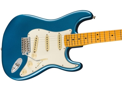 The American Vintage II 1973 Stratocaster® exudes the spirit of the era and is outfitted with a trio of Pure Vintage '73 staggered pole pickups, a large headstock with dual string trees, a convenient “Bullet” style truss rod nut and a three-bolt neck plate with Micro-Tilt™ mechanism. The “C”-shape maple neck plays like a dream with a 7.25” radius rosewood or maple fingerboard and vintage tall frets. The guitar is offered in three classic colors over ash: Aged Natural, Lake Placid Blue and Mocha, the latter being the first custom color ever to feature a black pickguard on a Strat®. Additional features include vintage-style “F” stamped tuners and a synchronized tremolo with bent steel saddles and cold rolled steel block.