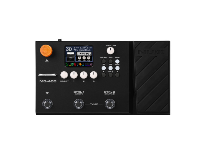 The NUX MG-400 is a value packed modeler akin to his little brother, the MG-300. MG-400 houses 2 powerful DSP chips for high-definition White-Box Amp Modeling algorithm (TS/AC-HD) and Core-Image post-effects. Since releasing the MG-300, people have been blown away by the sound and playability, not to mention the ease-of-use tone tweaking and intuitive interface. And now, the MG-400 builds upon the MG-300 feature set moveable signal blocks, 12 IR COLLECTION slots, flexible P.L block with MIN & MAX parameter setup, abundant SYSTEM MENU, and physical MASTER volume knob, MG-400 is now the best value modeler for the money.