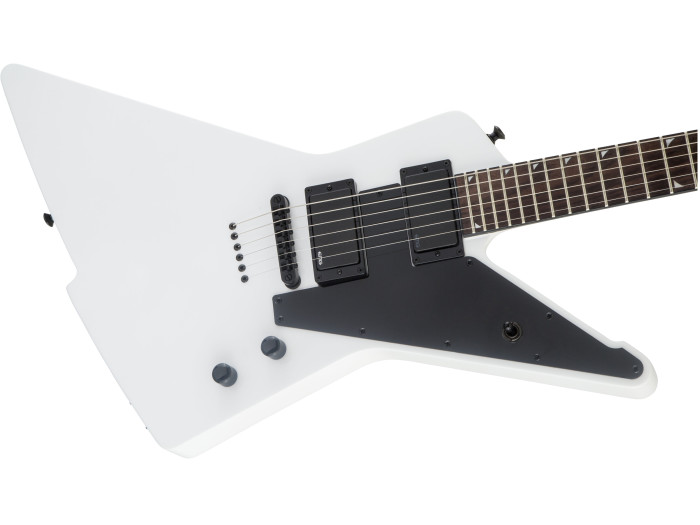 This axe also features dual volume knobs, three-way toggle switch, Jackson TOM-style adjustable string-through-body bridge, Dunlop® dual-locking strap buttons and Jackson pointed 6-in-line headstock.