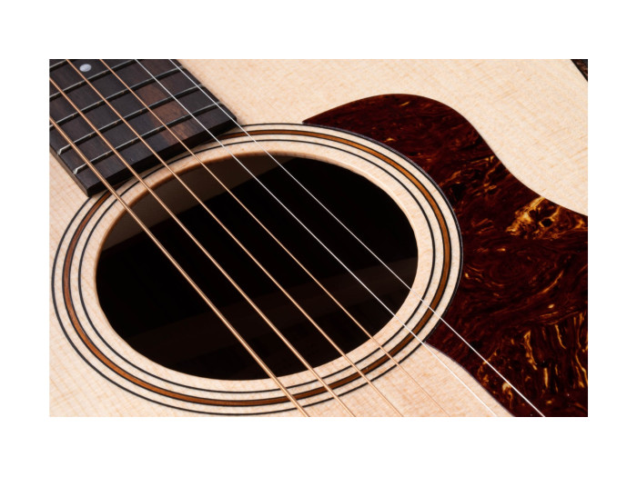 The Mahogany neck with a satin finish offers a comfortable playing experience, and the West African Crelicam Ebony fingerboard adds a touch of elegance and smoothness to your playing. The Grand Pacific scale length of 25.5 inches ensures a familiar feel and optimal string tension.