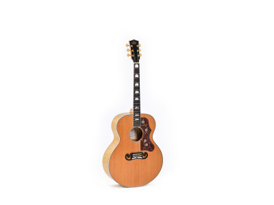 The wonderful Sigma GJQA-SG-200AN jumbo acoustic guitar was equipped with a solid Sitka spruce top. The back and sides were made of cloud maple (laminated ). The maple neck was equipped with an Micarta fingerboard. The body and the back of the neck were lacquered in high gloss. High quality Grover tuners are used to ensure proper tuning. The Sigma GJQA-SG-200 was equipped with a Fishman Sonitone pickup system.