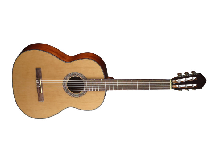 The traditional style AC models have been re-engineered to improve resonance for an authentic classical guitar sound. The nice combination of tone-woods yields a traditional, deep and delightfully mellow tone. Cort AC series is very forgiving of student mistakes,requiring slightly less precision and sharpness for a good tone. AC200 features Solid Spruce top, Mahogany back and sides, Ovangkol fingerboard and Savarez crystal strings.
