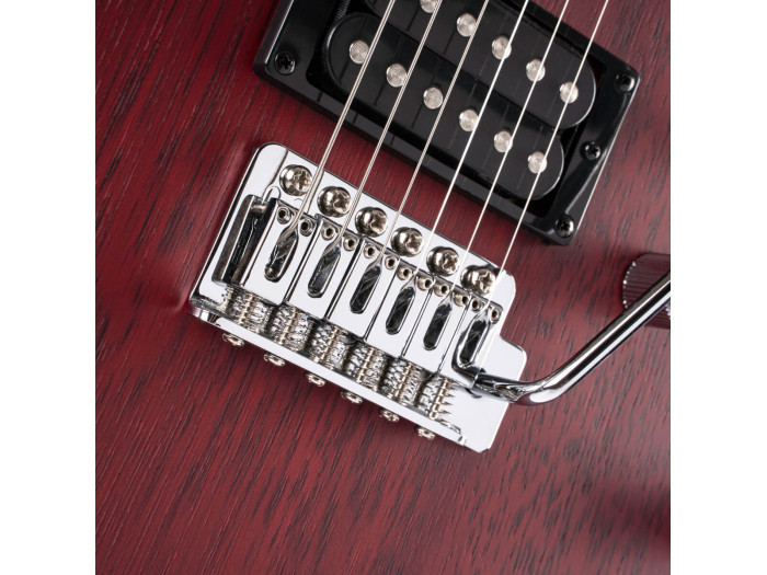The vintage style 6-screw tremolo bridge transfers more of the strings’ vibrational energy into the body of the guitar for greater acoustic resonance while providing excellent tuning stability.