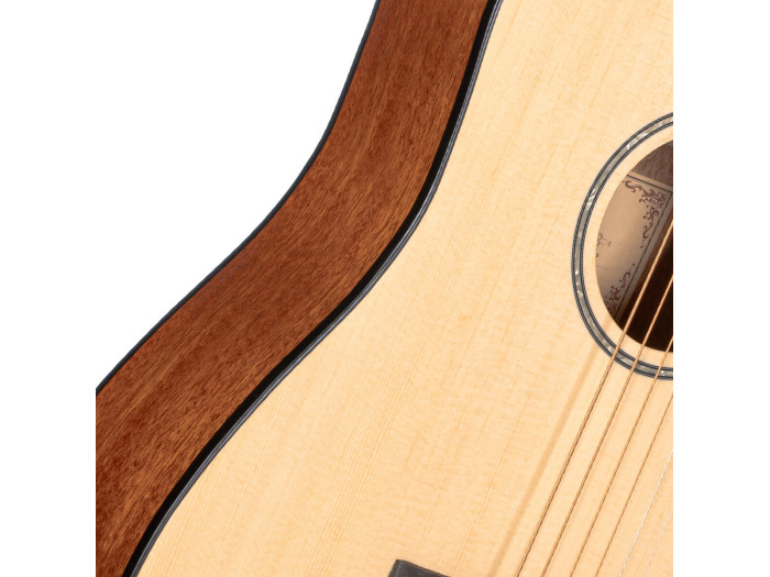 Spruce provides an ideal balance between strength and flexibility, hence its overwhelming popularity as the wood of choice for tops of acoustic guitars. Spruce’s versatile sonic character makes it ideal for a variety of musical genres and playing styles.