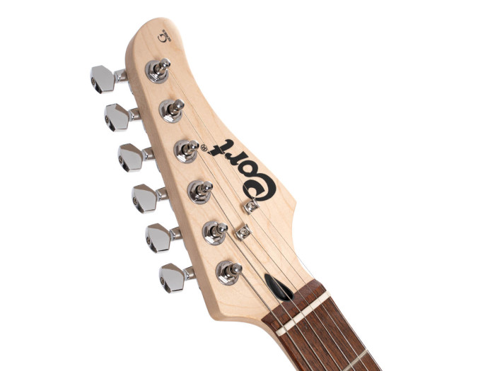 This popular pickup configuration with the 5-way switch provides a wide variety of sounds to cover virtually any musical style. With the middle and neck pickups alone or in combination, the sounds are not only ideal for rhythm playing but for distinctive single- coil lead sounds, while the powerful humbucker pickup in the rear provides fat and heavy tones that are perfect for power riffing or blistering leads.