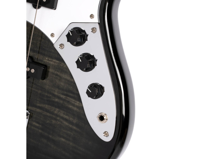 The lush flamed maple top provides a classy premium look that can only be found on higher priced instruments. Poplar used for the body is considered to be similar to Alder in tone, providing full-bodied resonance with a meaty tone.