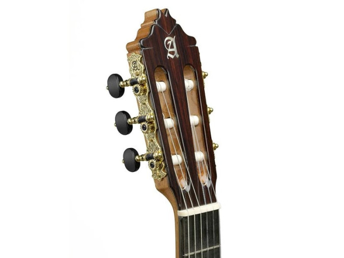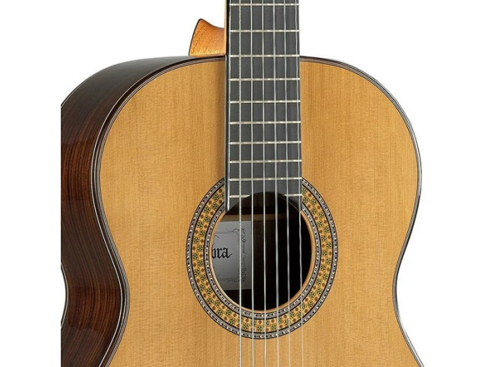 The Alhambra 9PA was redesigned in 2018 to incorporate a new neck with a more ergonomic and comfortable profile called an ERGONECK. It features a bridge-shaped cross bracing pattern to give the top maximum volume and projection. The solid spruce top and solid Indian rosewood back and sides work in harmony to produce crisp highs, lively mids and deep, velvety lows. But the richness of the sound is not this guitar’s only top quality: the action is also superb - high enough to make the guitar sing but extremely comfortable too. And the sound projection is perfect: basses, mediums and trebles are fully balanced. Like the conductor of an orchestra, you are in full control here and can effortlessly accentuate whichever voice you wish. The only limits to this instrument are those of your imagination. This handcrafted, yet robust instrument, has a smooth and polished feel. A masterpiece of engineering with precise attention to every detail. Concert width. Guitar case Alhambra 9557 included. Guitar case Alhambra AB ICONIC as option.