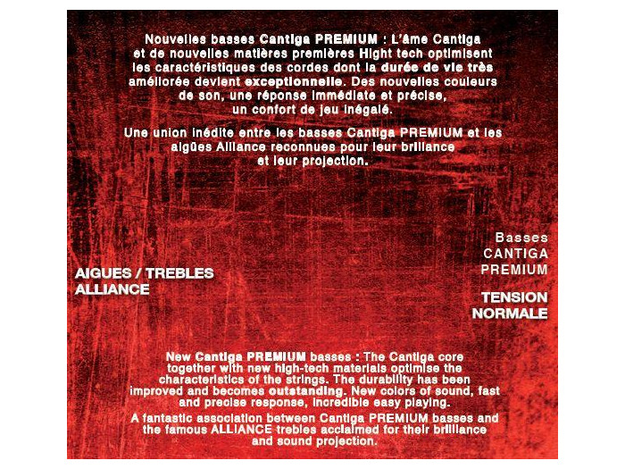 New Cantiga Premium basses are elaborated with very new raw materials.