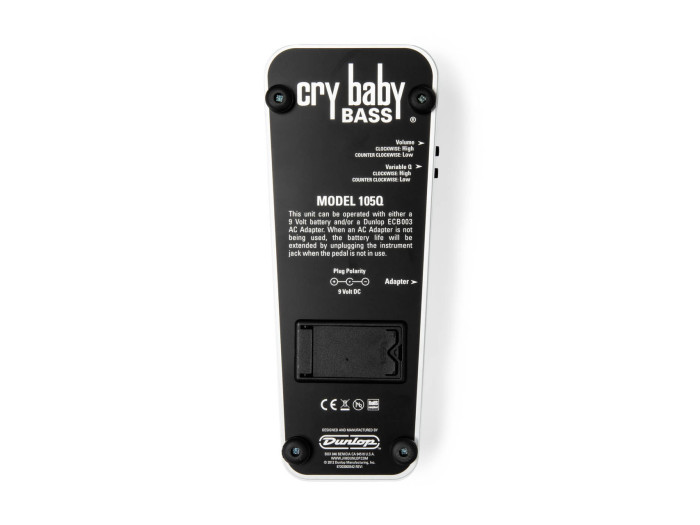 The first wah pedal designed by bass players for bass players. The 105Q incorporates a proprietary potentiometer and custom EQ circuitry specifically optimized for bass frequencies. The Cry Baby Bass Wah applies the wah effect to the mids and highs only, leaving a strong fundamental to hold down the bottom so you can take solos or throw in fills without ever disturbing your low end.