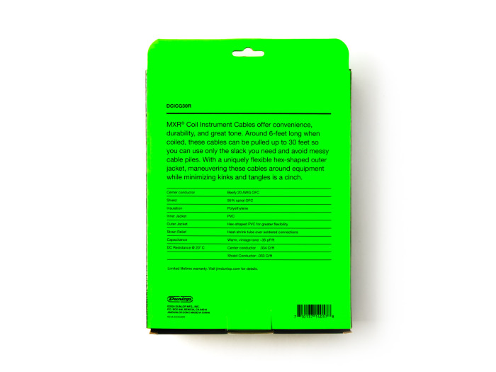 MXR Coil Instrument Cables offer convenience, durability, and great tone. They allow you to take only as much slack as you need while avoiding snaking piles of cable on the floor, and the unique flexibility-enhancing hex shape of the outer jacket makes it easy to position your cable around equipment while minimizing kinks and tangles. Tonally, these cables keep your signal bright and clear thanks to 20-gauge OFC conductor wire. Insulated from noise, these cables deliver pro-quality sound for the stage and the studio.