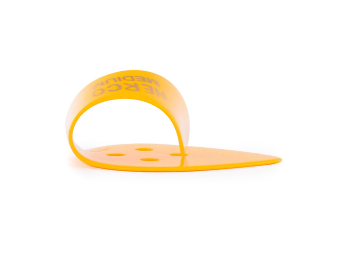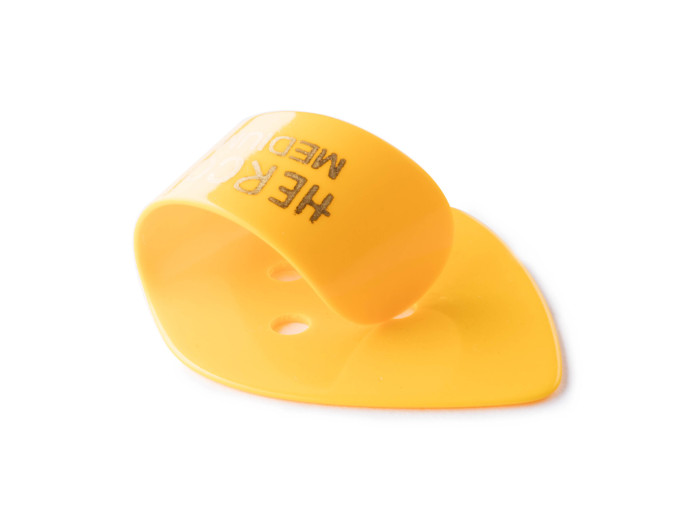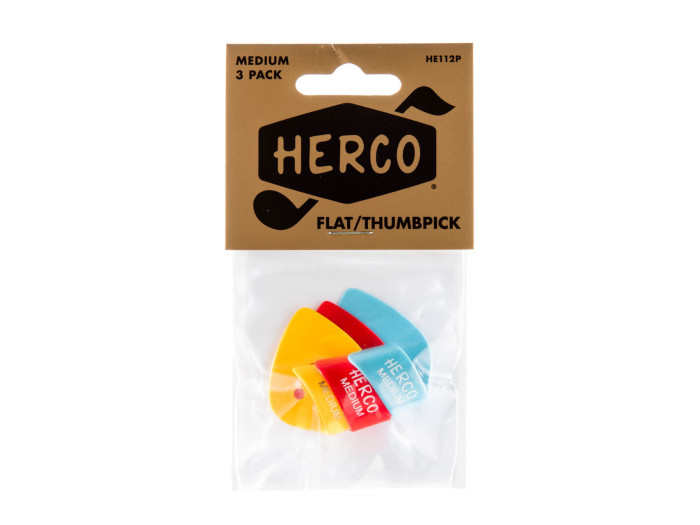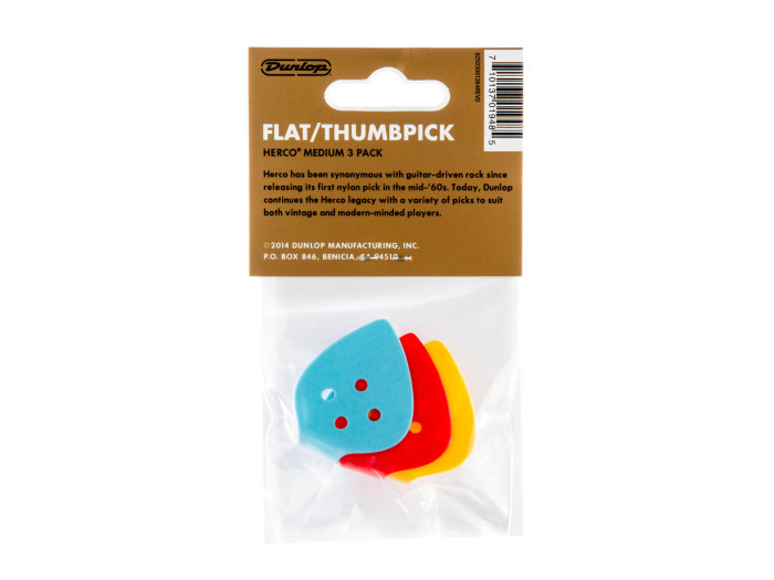 This Flat/Thumbpick is a combination of the traditional flat pick with a thumbpick loop. Made of celluloid in assorted colors.