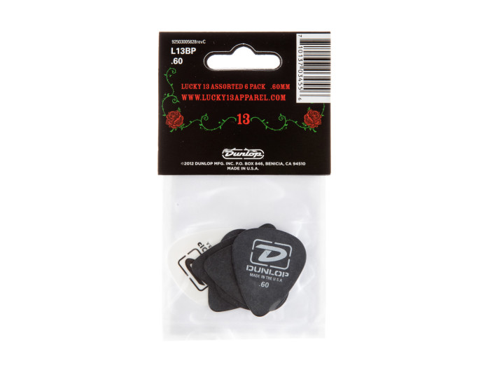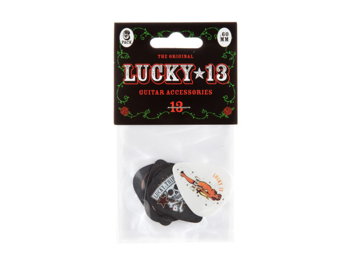 Dunlop and Lucky 13 Apparel have joined forces to bring you this line of rock and roll art inspired picks. These little collectors items sport full-throttle, in-your-face tattoo and rockabilly imagery and come in a variety of gauges.