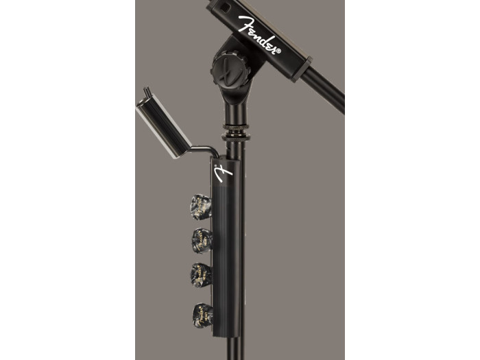 Featuring a strong arm to fix your mic securely in place at all adjustment levels, the Telescoping Boom Mic Stand was engineered to ensure stable positioning throughout extended performances and practice sessions. The custom embossed “F” Fender grip components and height adjustment twist clutch allows for quick, on-the-fly adjustments on stage. The Fender Telescoping Boom Mic Stand also includes a removable pick and slide holder that is easily attachable and detachable. Crafted from durable rubber, this clip-on accessory holds up to 12 picks for quick access and storage. The slide holder accommodates all standard slides and is also removable.