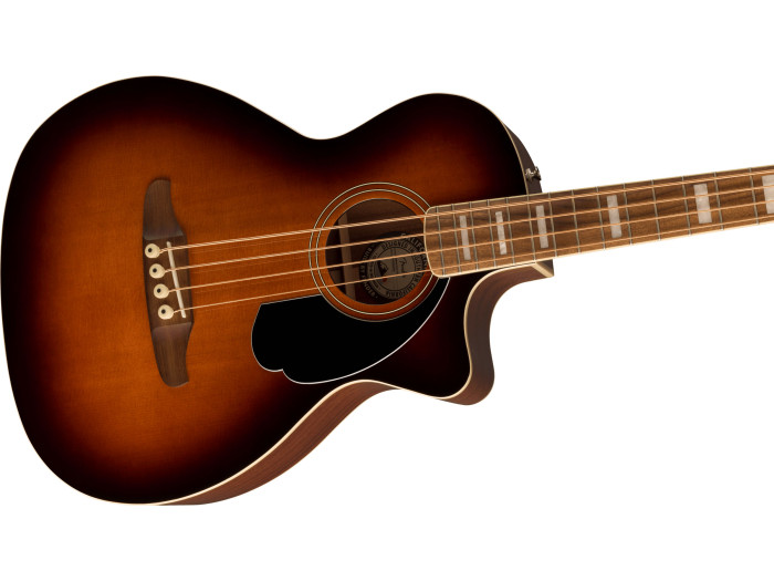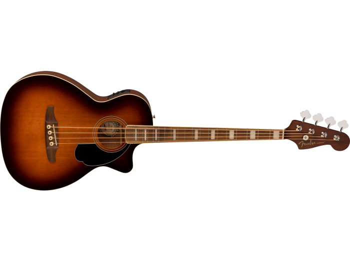 Crafted with an X-braced solid spruce top and sapele back and sides, the compact mid-sized auditorium body of the Kingman™ Bass produces a deep, punchy, and articulate tone and features a cutaway for convenient access to the upper frets. The bound nato neck is elegantly appointed with block inlays and is designed with a slim "C"-shaped Jazz Bass® profile, an easy-to-play short 30" scale length, comfortable 1.5" nut width, and a 4-in-line headstock for a distinctive look born from Fender's electric bass DNA. Other notable details include open-gear vintage-style tuning machines for smooth, accurate tuning, a GraphTech® NuBone® nut and saddle for focused fundamental tone, and a Fishman® Presys preamp system that allows detailed fine-tuning of the bass's amplified sound when performing or recording. A deluxe gig bag is included.
