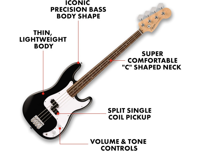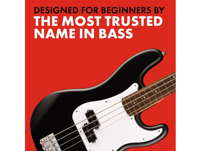 Designed for beginners, the Squier Debut Series Fender Precision Bass includes a super-comfortable "c" shaped neck, laurel fingerboard and thin, lightweight body for more comfort and playability.