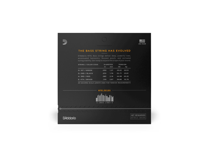 The premium nickel-plated steel wrap wire used for NYXL bass strings features a reengineered core-to-wrap ratio, for a more versatile string which still maintains a familiar feel, plus accentuated harmonics.