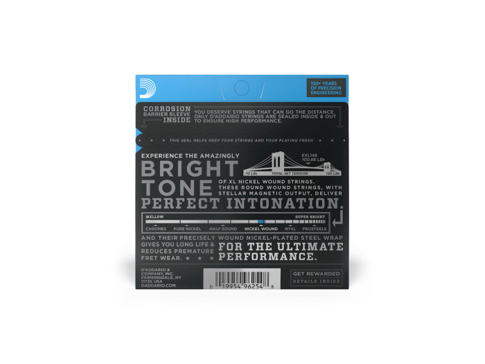 Like all D’Addario electric guitar strings, XL Nickel are made with our proprietary Hex-Core, ensuring perfect intonation, consistent feel, and reliable durability.