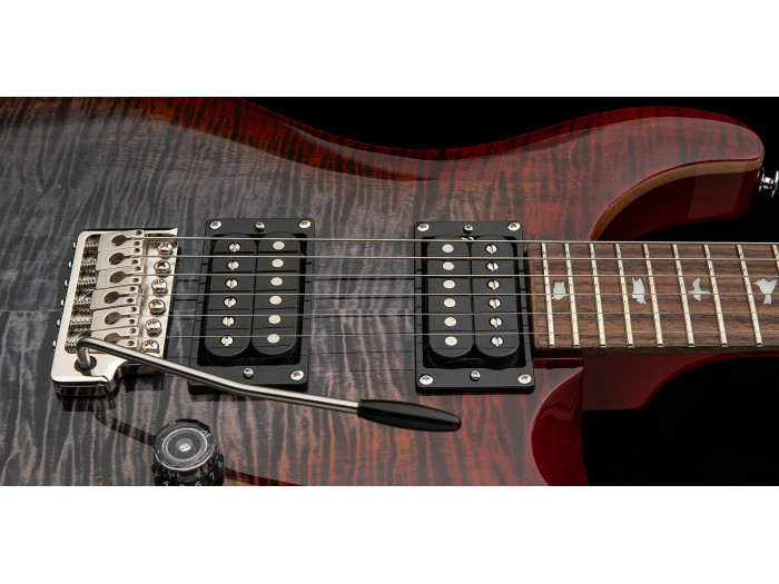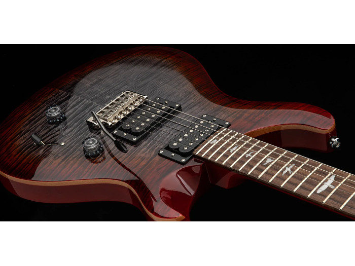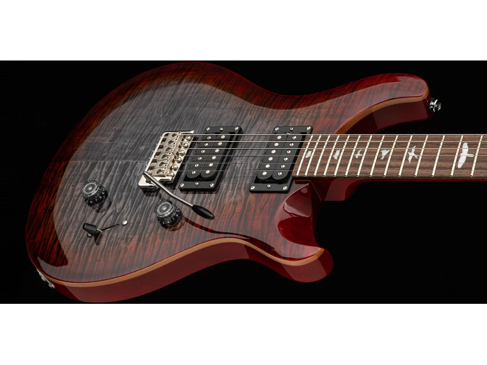 Featuring a maple top, mahogany back, wide thin maple neck, rosewood fretboard with bird inlays, and the PRS patented tremolo, the PRS SE Custom 24 boasts many familiar appointments. Its versatile sounds come from the 85/15 “S” pickups paired with a volume, push/pull tone control, and 3-way blade pickup selector. Now with ergonomic lampshade knobs and PRS's flat-grip switch tip design, the PRS SE Custom 24 is more performance-ready than ever.