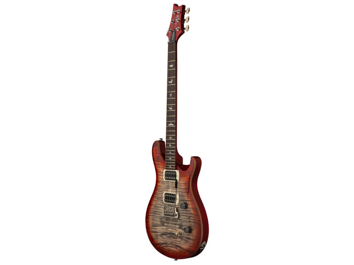 Classic design elements include a maple top, mahogany back, rosewood fretboard, 24 frets, 25” scale length, bird inlays, signature headstock logo, and PRS patented tremolo.