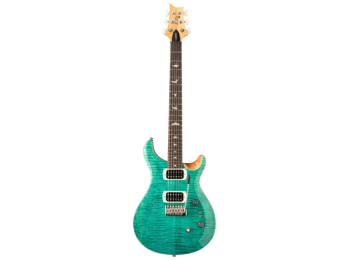Classic design elements include a maple top, mahogany back, rosewood fretboard, 24 frets, 25” scale length, bird inlays, signature headstock logo, and PRS patented tremolo.