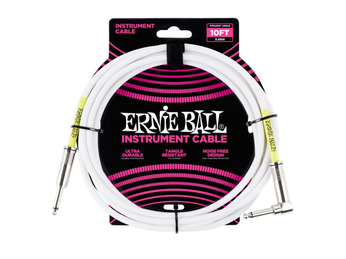 Ernie Ball instrument cables feature a high-quality design made with superior components that are built to last. Dual-conductors deliver reliably clear tone with crisp highs, tight mids, and rich harmonics. Multiple shielding materials preserve the signal with low handling noise, and the durable PVC jacket exterior ensures long-lasting performance. Cable length 10ft (3.05m).