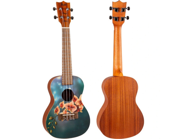 The Flight AUC-33 Orchid Concert Ukulele features a stunning orchid design. With this gorgeous ukulele, there is no need to visit your local botanic garden to get your “flower fix” Instead, you can recreate the feeling of a flower garden right in your home–and sing about flowers, too! It is incredibly satisfying to gaze at flowers and appreciate the beauty of nature. In the same way, we are sure you won’t be able to put this ukulele down or to stop yourself from taking photos of it. For a very special ukulele collection, match it with our Flight AUC-33 Jungle Concert Ukulele.